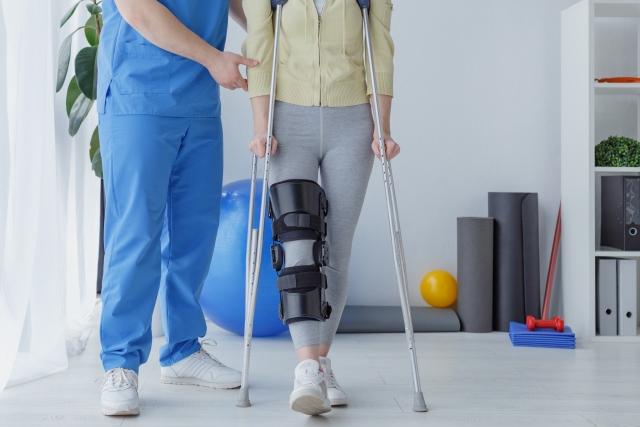 友達は うまく松葉杖がつけず