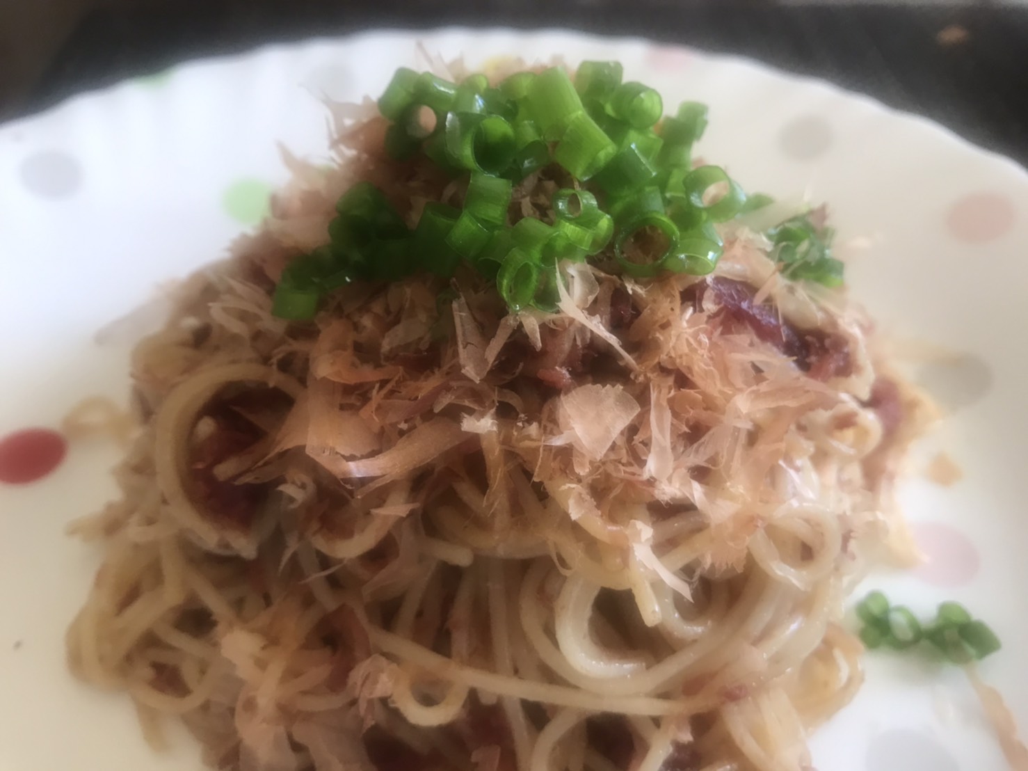 花かつをとネギをトッピングして